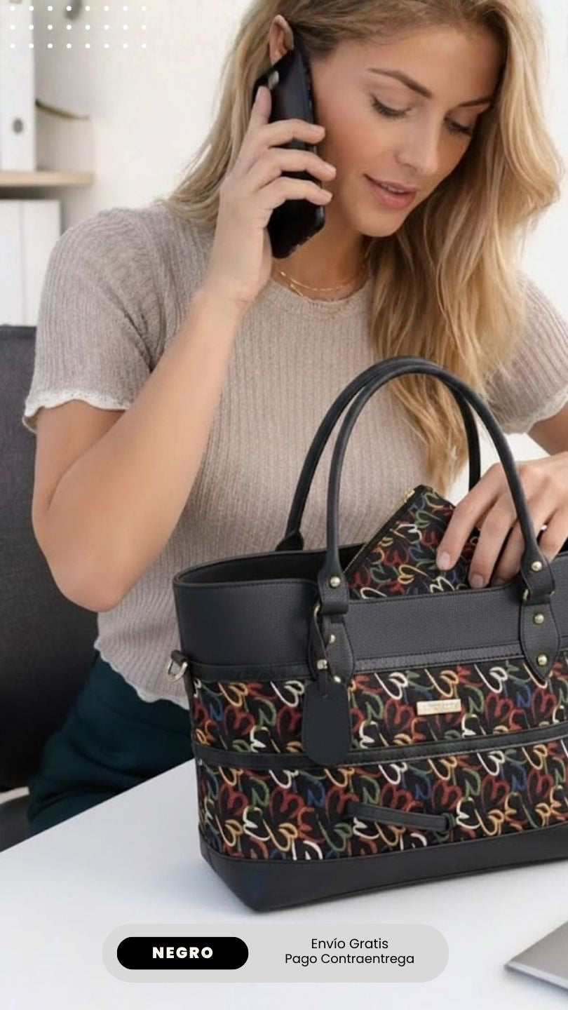 Un bolso amplio, estructurado y con monedero incluido para que tu rutina sea más práctica y con más estilo.
