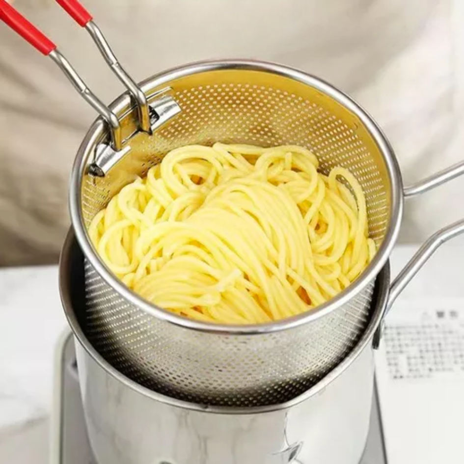 Diseñada en acero inoxidable 304, con mango antideslizante y cesta coladora, es la olla que combina seguridad, estilo y versatilidad en cada preparación.