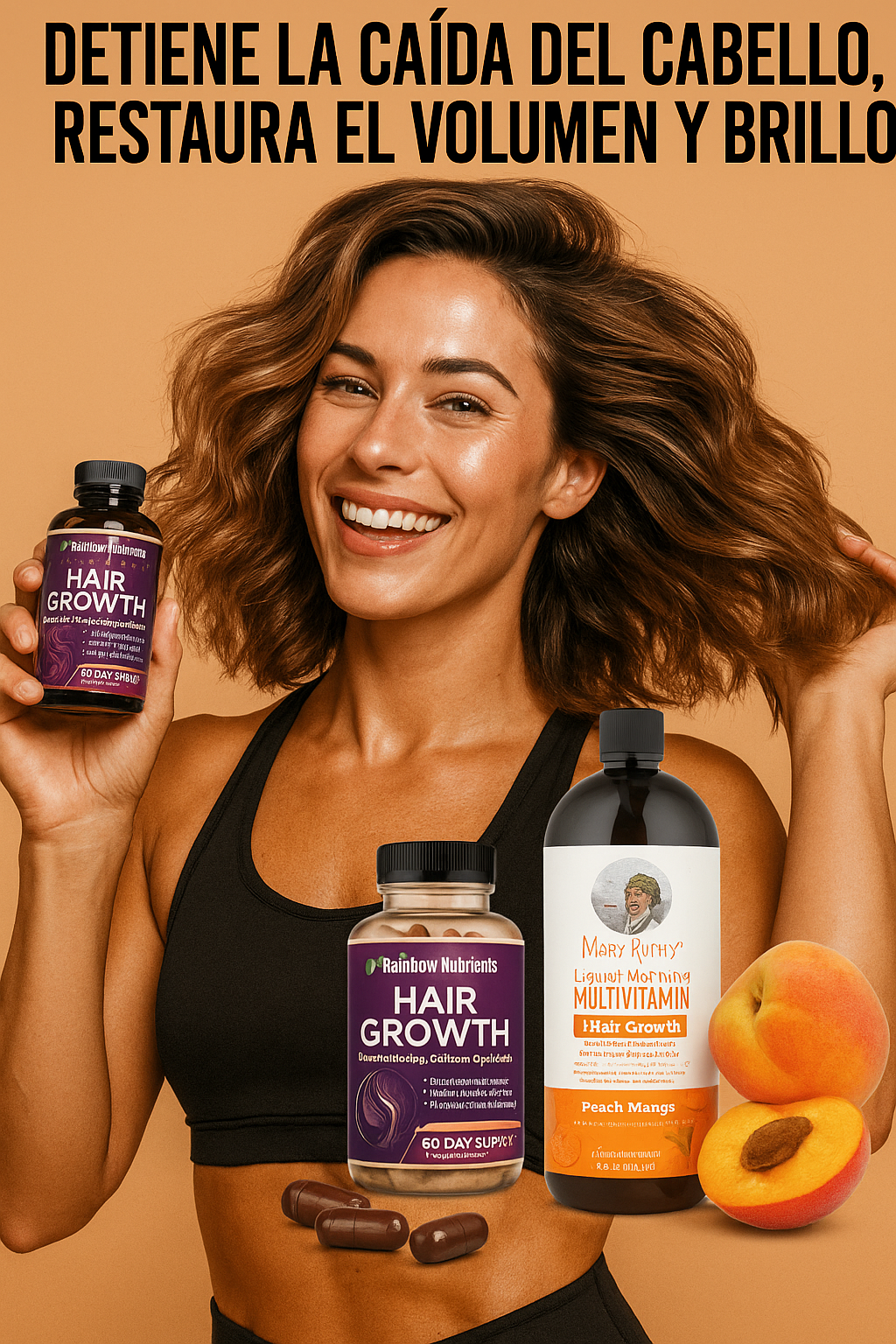 Presentación: Hair Growth 120 cápsulas (60 días de uso). y el Multivitamínico es liquido